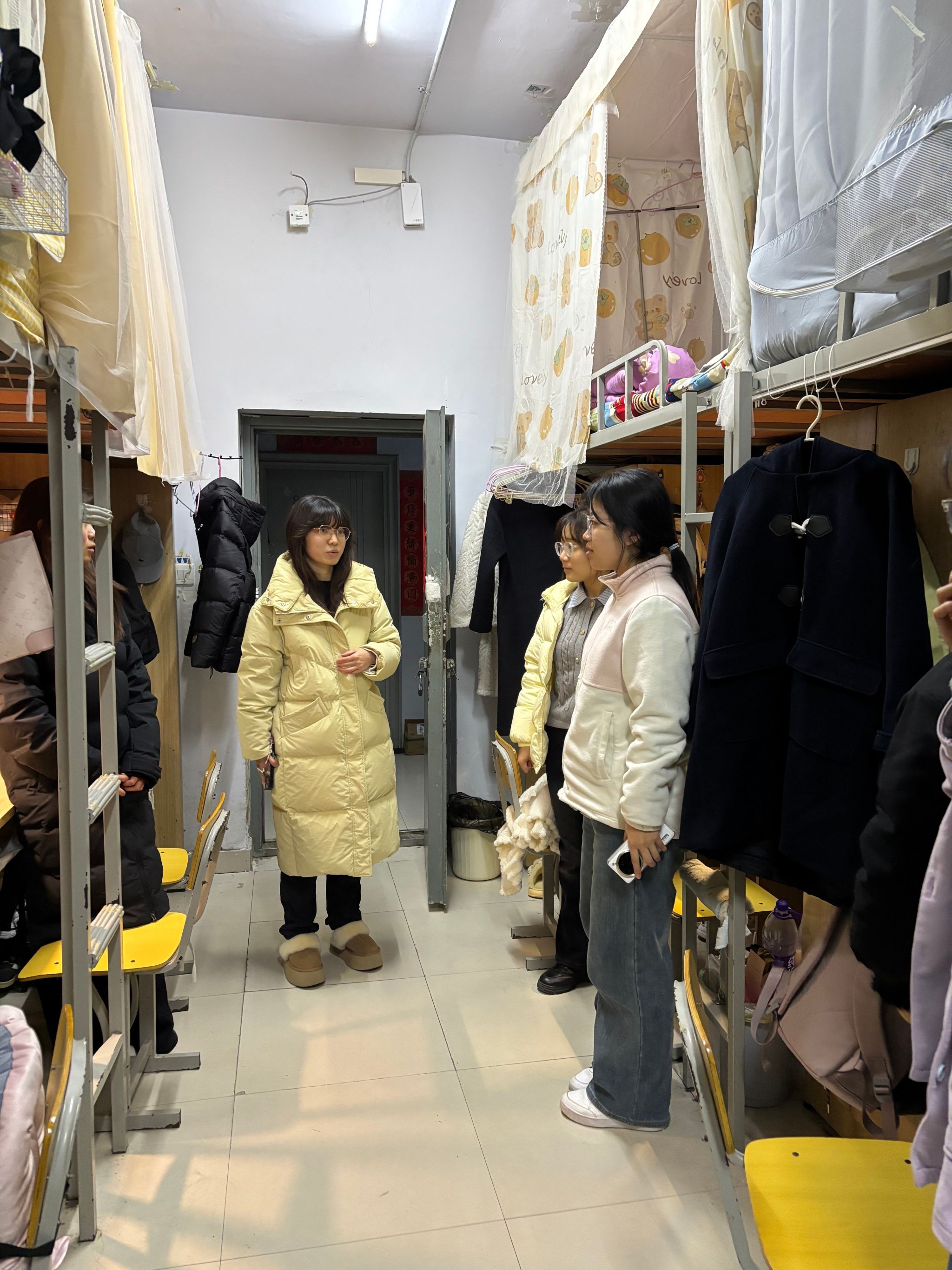 为切实帮助青年大学生缓解开学焦虑,筑牢安全防线,明确学习方向,2026年3月8日,我院组织开展暖心访寝活动。学院党总支书记沈光天、党总支副书记高静带领全体辅导员深入学生宿舍,传递学院的关怀与温暖。