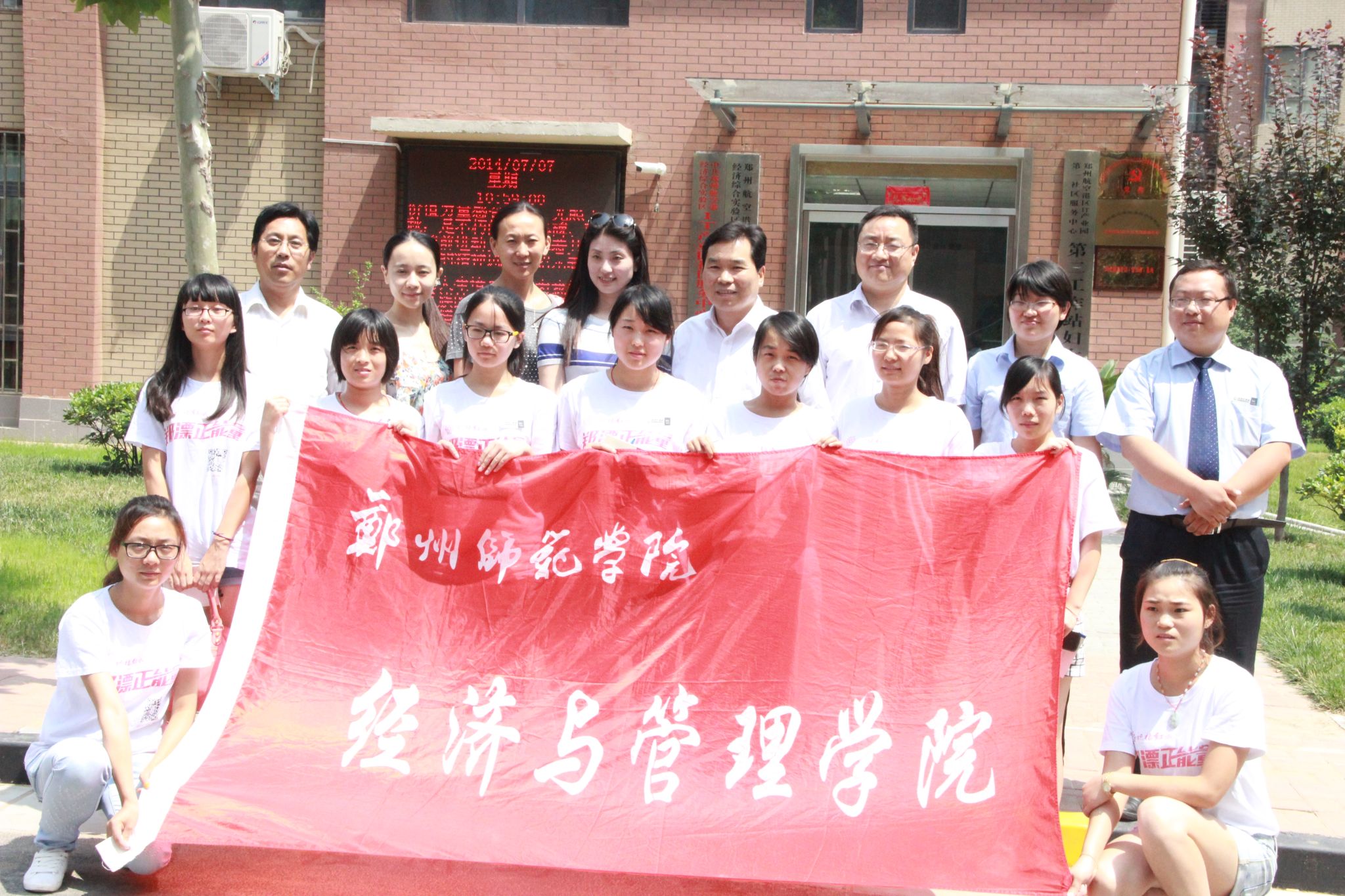 2014年7月7日上午,副校长贾敏仁在校团委王珊书记、经济与管理学院杨保河书记、经济与管理学院陈西川院长、团委宣传部刘怿部长、团委李思嘉老师等人陪同下到郑州航空港区郑州新世纪物业管理公司慰问经济与管理学院参加暑期社会实践活动的学生。
