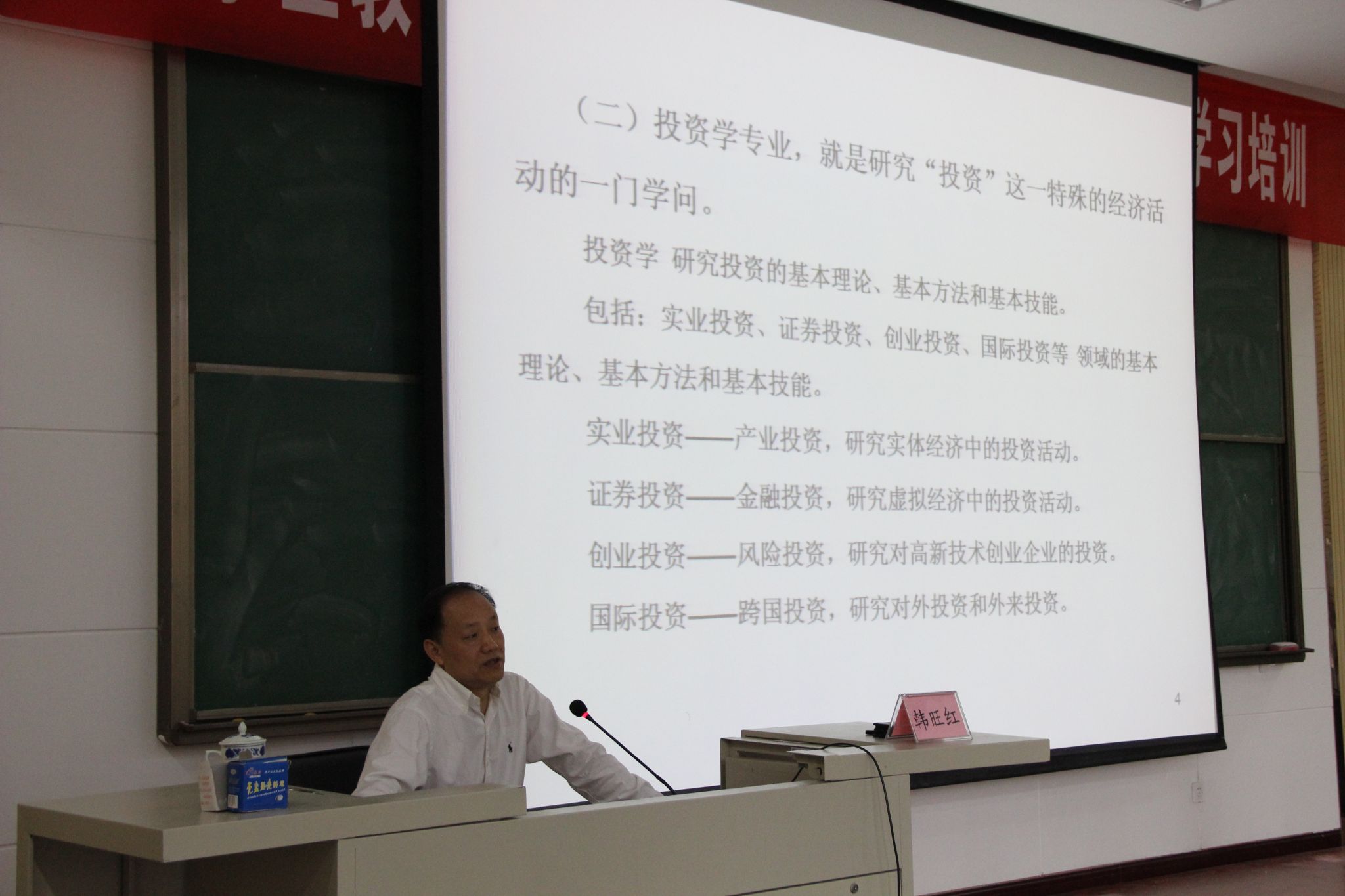 上午9时,在经管楼报告厅,中南财经政法大学投资学主任、博士生导师、全国投资协会秘书长韩旺红教授为我院2013级投资学专业、投资与理财两个专业的学生进行了一期关于投资学专业学习漫谈的讲座。在本次讲座中,韩旺红教授就投资学专业学习主要讲授了投资学专业的特色、学生的专业能力及就业方向、投资学专业课程设置与学习方法、保研与考研以及关于中南财经政法大学的投资学专业和投资系的大致情况等五个方面,让我们在深入了解投资学专业的同时,深刻认知到在学习投资学专业时自己应该培养的专业能力,以及对未来投资学专业的就业规划有了一定的方向感。就投资学这门专业,韩旺红教授对保研与考研方面作了详尽的说明,更是让我们对今后的学习与就业有了进一步的认知。