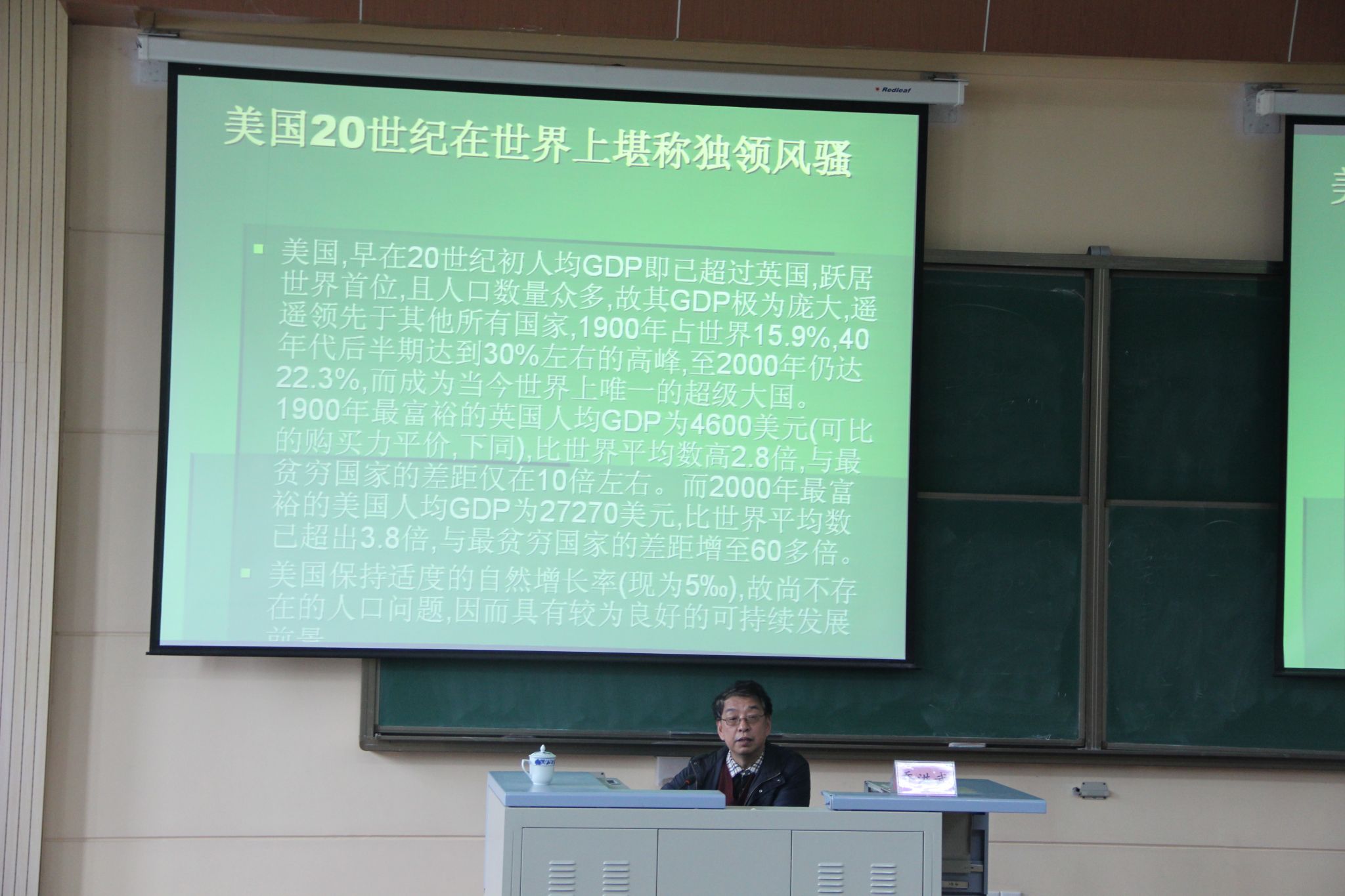 2014年4月16日上午,武汉大学经济与管理学院教授、博士生导师乔洪武老师来到我校,为经济与管理学院师生带来了一场以“当代世界政治经济变迁及启示”为主题的讲座,讲座由学院副书记杨保河主持。