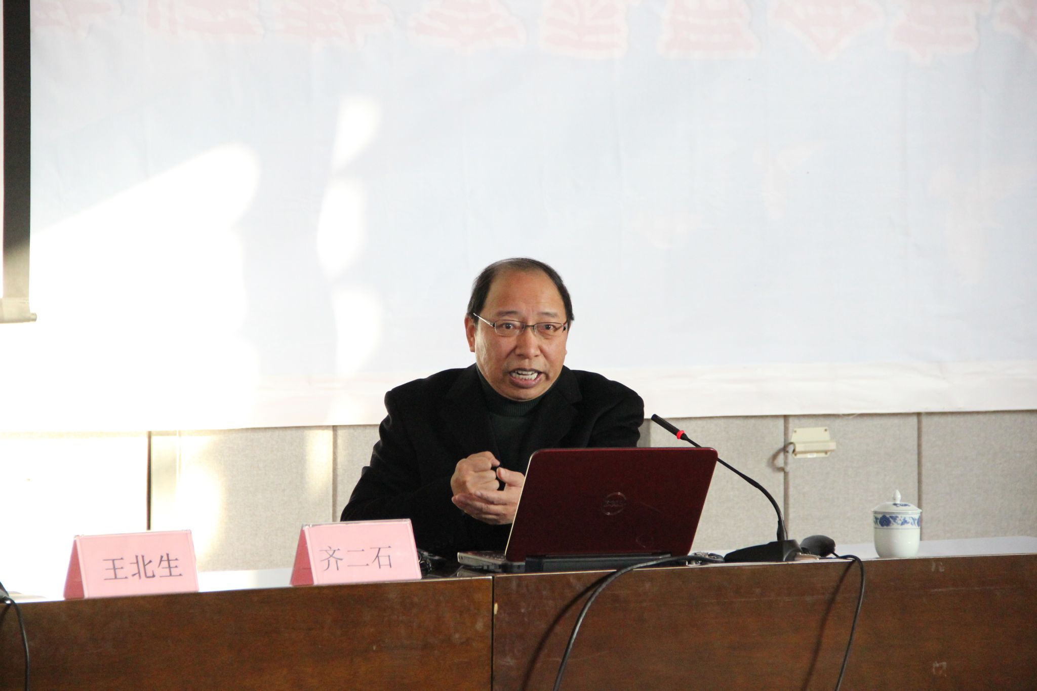 在公共教学楼A301,齐二石教授为我校全体师生进行了一场题为《服务管理创新方法》的讲学。讲座由副校长王北生主持,北京大学教授李建国、郑州师范学院党委书记于向英、校长赵健等出席。