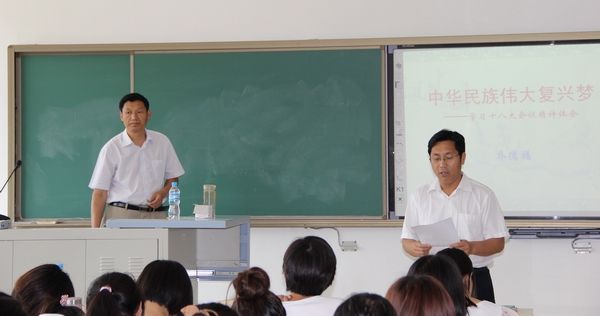 6月4日下午,学校宣讲团党的十八大精神报告会在公共教学楼c319举行,学校十八大宣讲专家、思想政治教学部主任乔德福教授,为经管学院师生作题为“中国梦”专题讲座。经管学院全体师生聆听了此次讲座。讲座由院党总支副书记杨保河主持。