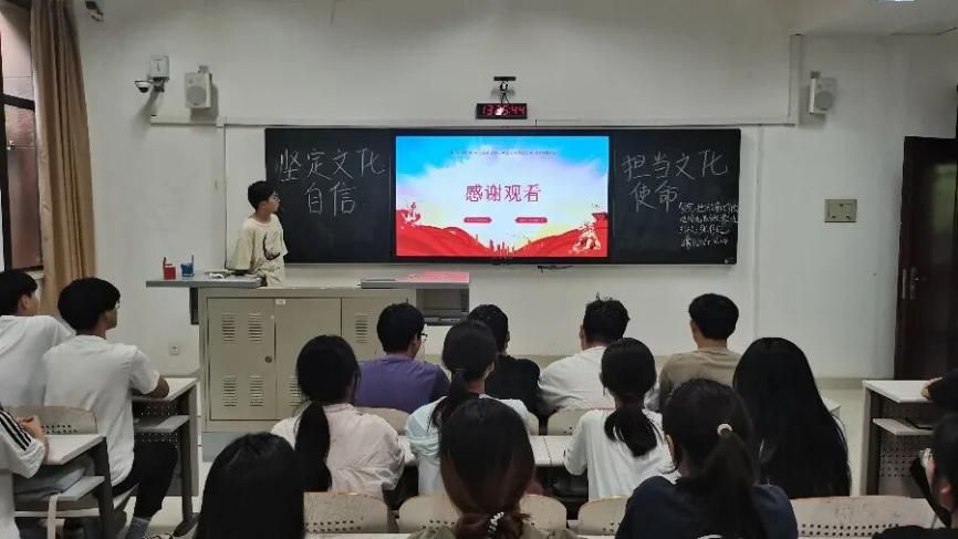 会议最后,主讲人再一次强调了当代青年大学生担负文化使命的紧迫感,并指出新时代青年要坚定文化自信,弘扬中华优秀传统文化,奋发有为、砥砺前行,以实际行动为实现中华民族伟大复兴贡献自己的力量。