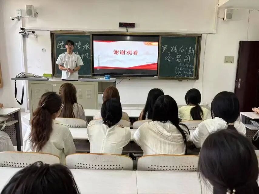 在团课过程中,主讲人以“社会主义理论传承与中国实践”为主线,通过时间轴梳理社会主义从理论到实践的历程,结合专题讲解、改革开放历史影像片段,系统阐释中国特色社会主义的理论逻辑与实践逻辑。同时,以生动史实串联起社会主义发展的关键节点,结合党的二十大精神,重点解读新时代青年在理论传承与实践创新中的使命,即坚定信仰传承社会主义理论精髓,以创新担当投身中国式现代化实践,在学思践悟中成为理论火炬的传递者与实践蓝图的绘就者。