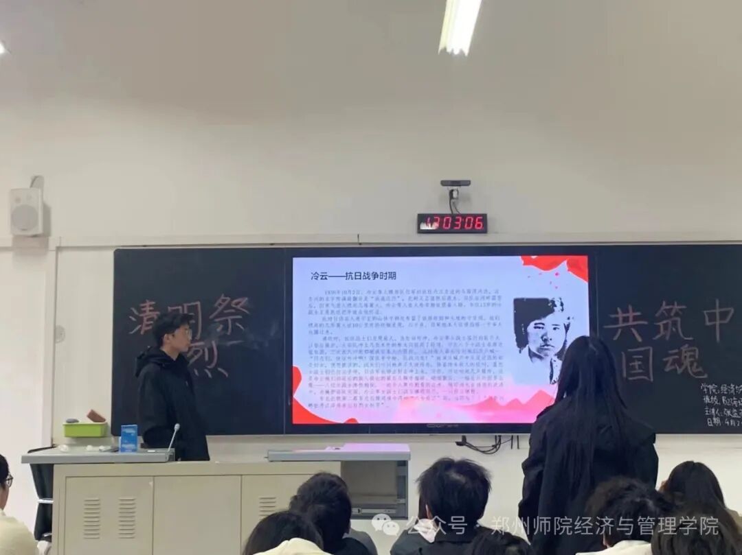 4月2日中午,经济与管理学院23级全体学生在文汇楼召开了以“清明祭英烈,共筑中国魂”为主题的政治学习会议。本次政治学习会议主要分为四个部分,分别为“清明时节雨纷纷”“英雄的光辉事迹”“清明祭英烈”和“吾辈青年”。