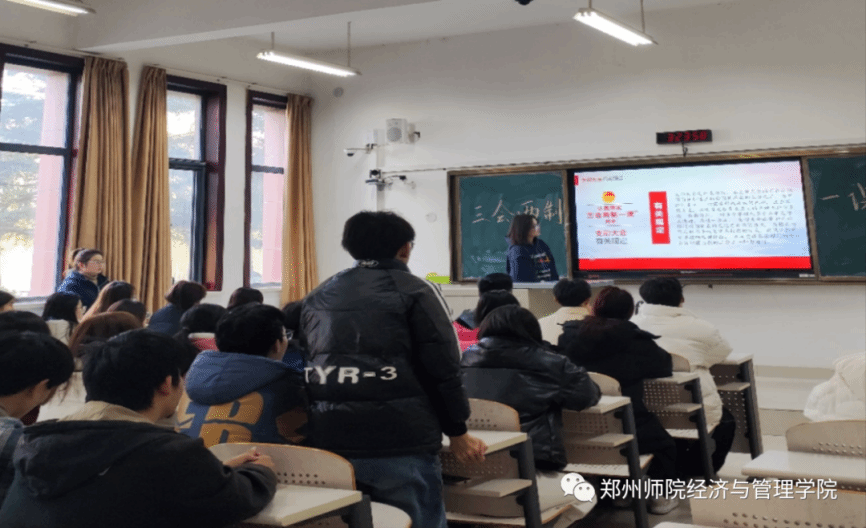 为提高我院学生的思想理论水平和政治素养,经济与管理学院2023级全体学生以班级为单位,于2023年11月28日中午组织开展了以“三会两制一课”为主题的团课。