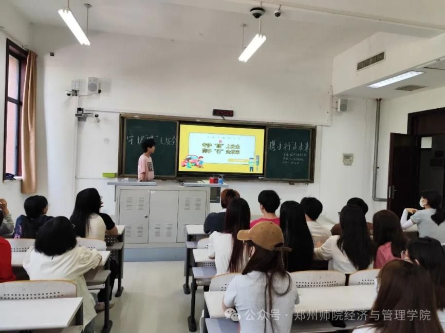 5月14日中午,经济与管理学院23级全体学生在文汇楼召开了以“守护‘路’上安全,携手‘行’走未来”为主题的政治学习会议。本次会议主要分为四个部分,分别为“交通安全基础知识”、“出行前的安全准备”、“道路行车安全”以及“极端天气安全驾驶”。