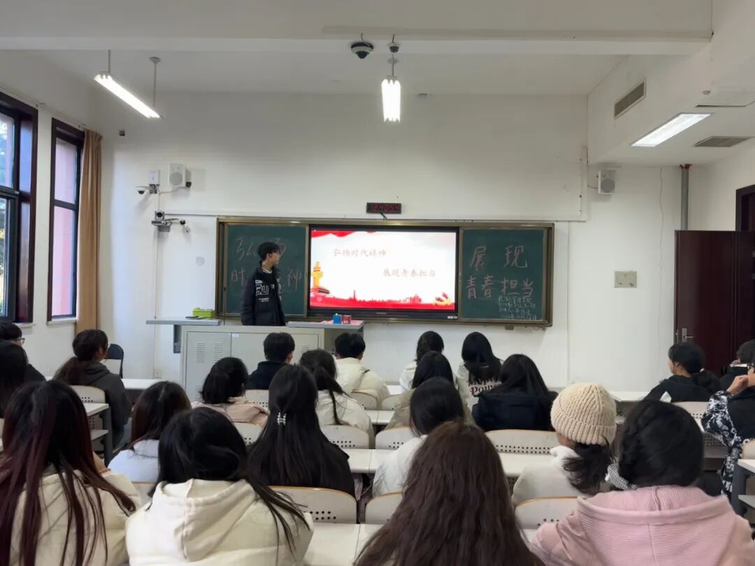 时代精神代代传,青春担当应彰显。2024年11月26日经济与管理学院团总支带领24级全体学生在文汇楼开展了以“弘扬时代精神,展现青春担当”为主题的团课。青春因磨砺而出彩,人生因奋斗而升华。本次团课旨在进一步弘扬时代精神的壮丽篇章,展现出坚实有力的担当力量,激励当代青年学子为实现中华民族伟大复兴的中国梦注入源源不断的青春力量。