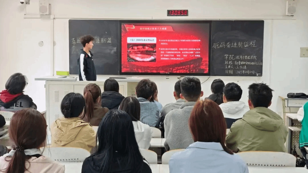 为增强我院学子了解我国的光辉历史,将个人的发展于国家发展结合起来。2024年10月10日组织24级全体学生在文汇楼召开了以“喜迎华诞谱新篇,砥砺奋进新征程”为主题的政治学习会议。