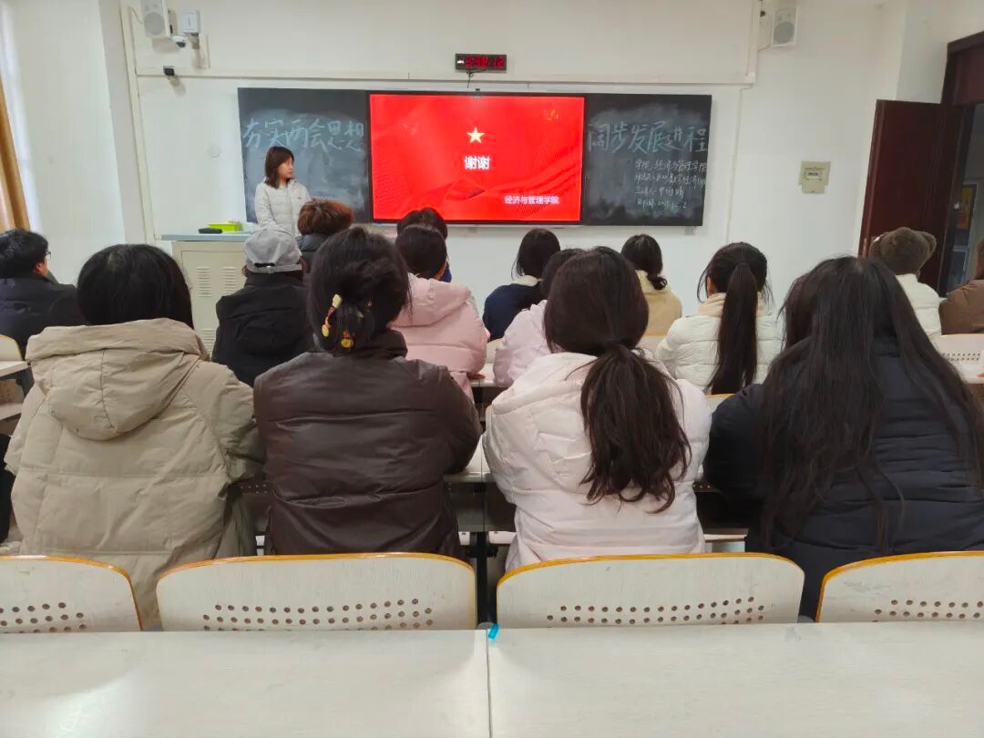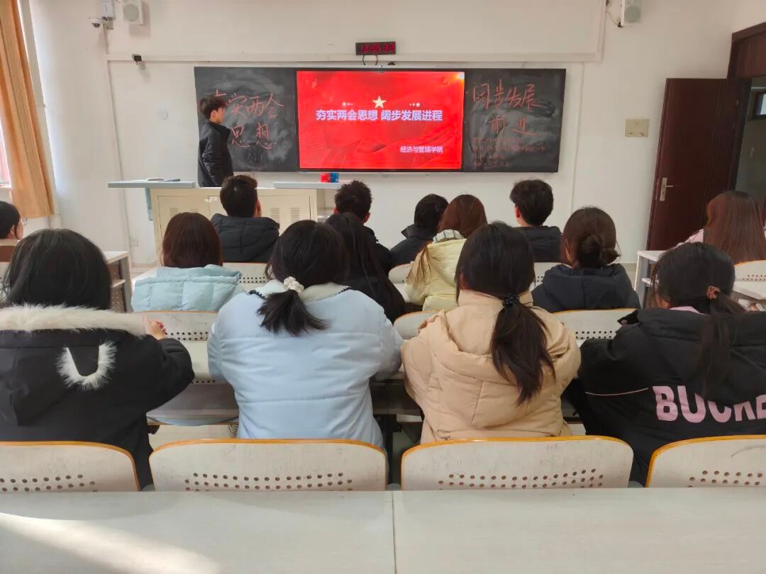 为深化青年大学生对两会精神的理解,明确时代发展方向,经济与管理学院于12月2日组织全体学生在文汇楼开展以“夯实两会思想,阔步发展进程”为主题的政治学习会议。