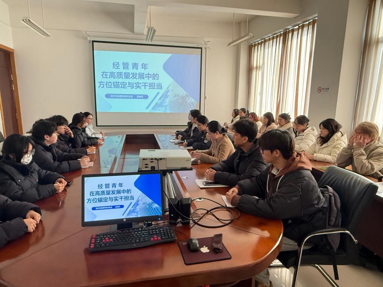 为引导经管青年明晰使命担当、找准服务高质量发展的实践路径,12月24日,经济与管理学院党总支书记沈光天在文博楼C522以“经管青年在高质量发展中的方位锚定与实干担当”为题,为我院学生党员上形势政策课。