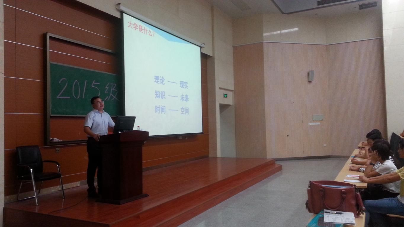 2015年9月24号在公共教学楼B214教室,我院陈西川院长对经济与管理学院2015级全体新生进行了入学教育。