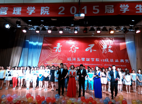风吹柳花满师院,情深意长留心间。6月11号中午,经济与管理学院在7号楼报告厅隆重举办2015届毕业生毕业典礼。校长赵健与经济与管理学院全体教职工参加了本次仪式,仪式由该院闫睿老师主持。