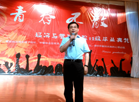 最后,赵健校长发表了重要讲话,他对即将踏上新的人生征程的毕业生们提出了三点希望:继续学习,终身学习;适应形势,转变就业观念;学会做人,与人为善,走正道,创正业,创佳绩,展示经济与管理学院良好形象,为母校增光。全体毕业生回应,请校长放心,请母校放心,牢记嘱托,开拓进取,奋力拼搏,再创辉煌。