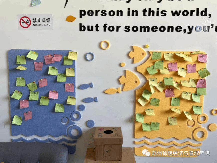 此活动主要分为两部分,第一部分是“写出烦恼倾诉”,参与学生需要将自己的烦恼写在便签纸上并订在展板上,以此来宣泄自己的情绪。第二部分是“抽取安慰盲盒”,在此过程中,参与学子需要从安慰盲盒中抽取并投入一张鼓励便签,在心灵获得他人慰藉的同时也为他人留下鼓励的话语。活动通过“写下便签——抽取便签——再写便签”这个循环网络路线,让青年学子倾诉烦恼、获得鼓励、并安慰他人。小小的便签传递大大的能量,这个大大的能量将如一缕冬日的暖阳,温暖每一个学子的心。