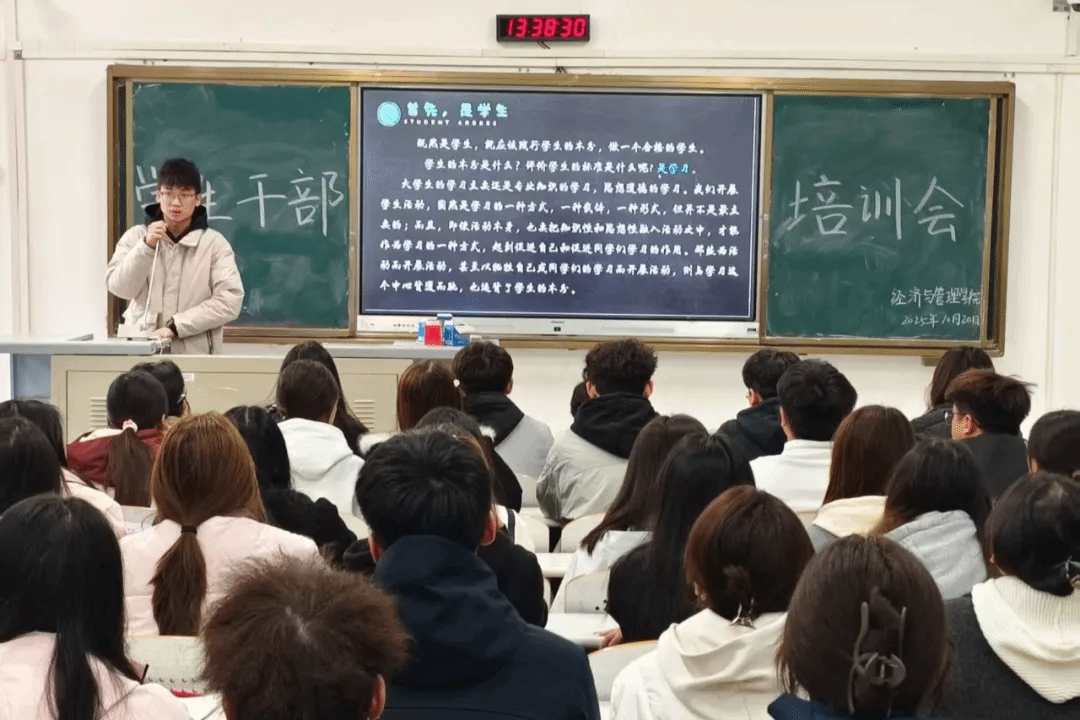 为增强学生干部团队凝聚力,保障学院工作高效推进,10月20日,经济与管理学院于文汇楼C116顺利召开2025级学生干部培训会。