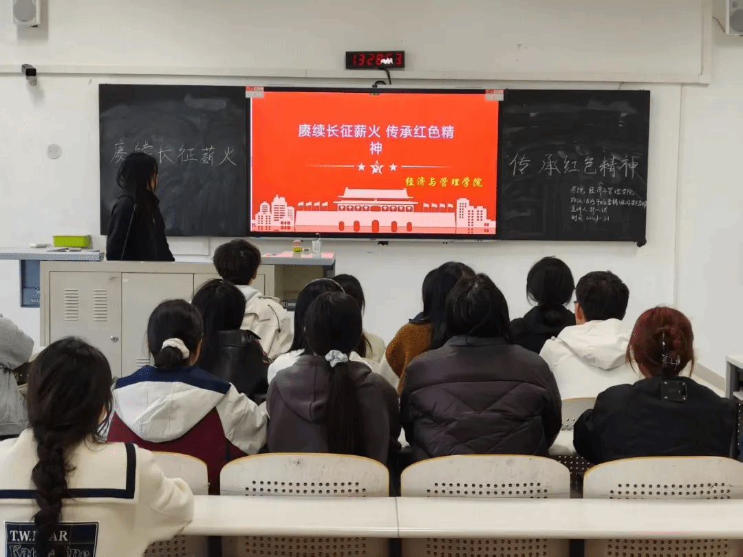 长征精神是中华民族宝贵的精神财富,为引导青年大学生深刻领悟红色精神的时代价值,将长征薪火融入青春使命,经济与管理学院于10月21日组织全体学生在文汇楼开展以“赓续长征薪火,传承红色精神”为主题的政治学习会议。