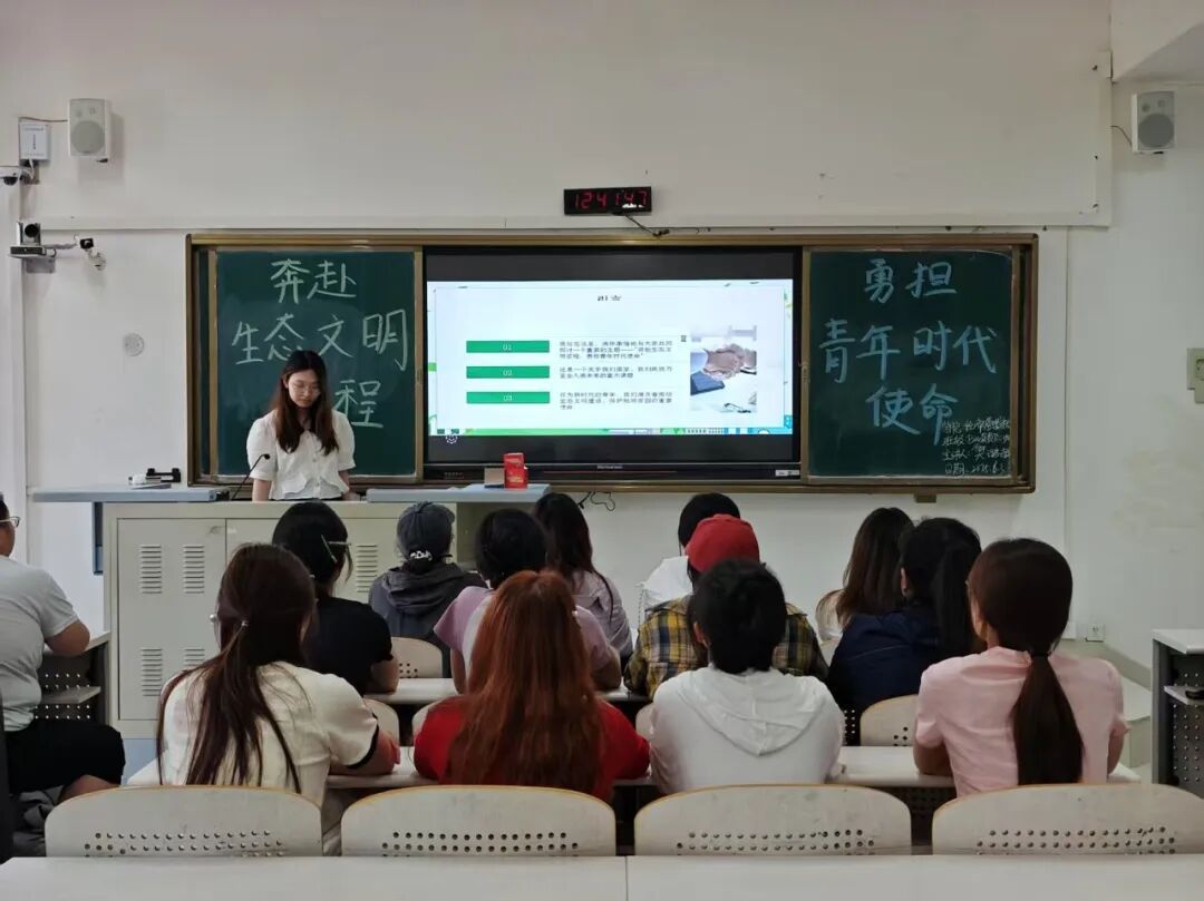 随后,主讲人着重强调青年群体在生态文明建设中的核心责任与具体使命,号召青年大学生争做生态文明建设的倡导者、实践者和推动者。青年首先要深化思想认知,将生态文明理念内化于心,形成强烈的责任感和使命感;其次,要从日常小事中践行绿色行动,通过低碳出行、垃圾分类等环保生活方式,积极参与志愿服务,传播生态文化。更为关键的是,青年应勇于创新创造,聚焦清洁能源、循环经济等前沿领域,以科技创新为生态文明建设提供有力支撑。