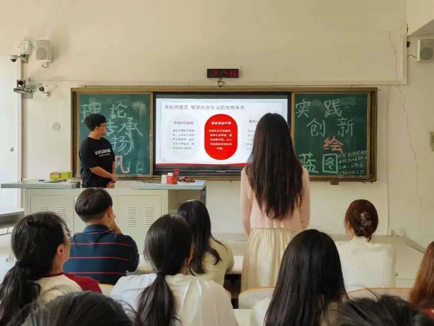 在团课过程中,主讲人以“社会主义理论传承与中国实践”为主线,通过时间轴梳理社会主义从理论到实践的历程,结合专题讲解、改革开放历史影像片段,系统阐释中国特色社会主义的理论逻辑与实践逻辑。同时,以生动史实串联起社会主义发展的关键节点,结合党的二十大精神,重点解读新时代青年在理论传承与实践创新中的使命,即坚定信仰传承社会主义理论精髓,以创新担当投身中国式现代化实践,在学思践悟中成为理论火炬的传递者与实践蓝图的绘就者。