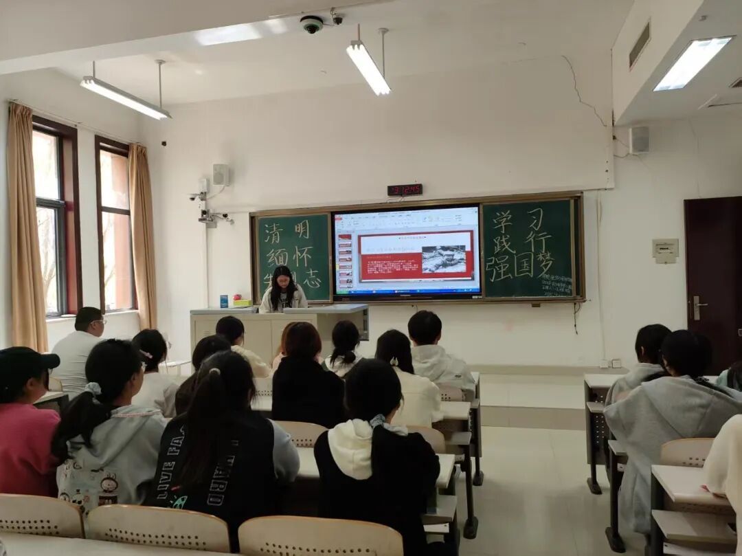 会议伊始,主讲人阐述了清明节寄托哀思,敬畏生命的内涵,讲述了不同历史时期的英雄事迹。新民主主义革命时期,董存瑞舍身炸碉堡,黄继光用胸膛堵枪眼;社会主义革命和建设时期,王进喜投身石油会战,钱学森冲破阻碍回国;改革开放后,袁隆平研究杂交水稻,抗洪抗震救灾英雄挺身而出。这些事迹深深打动了我院学子。