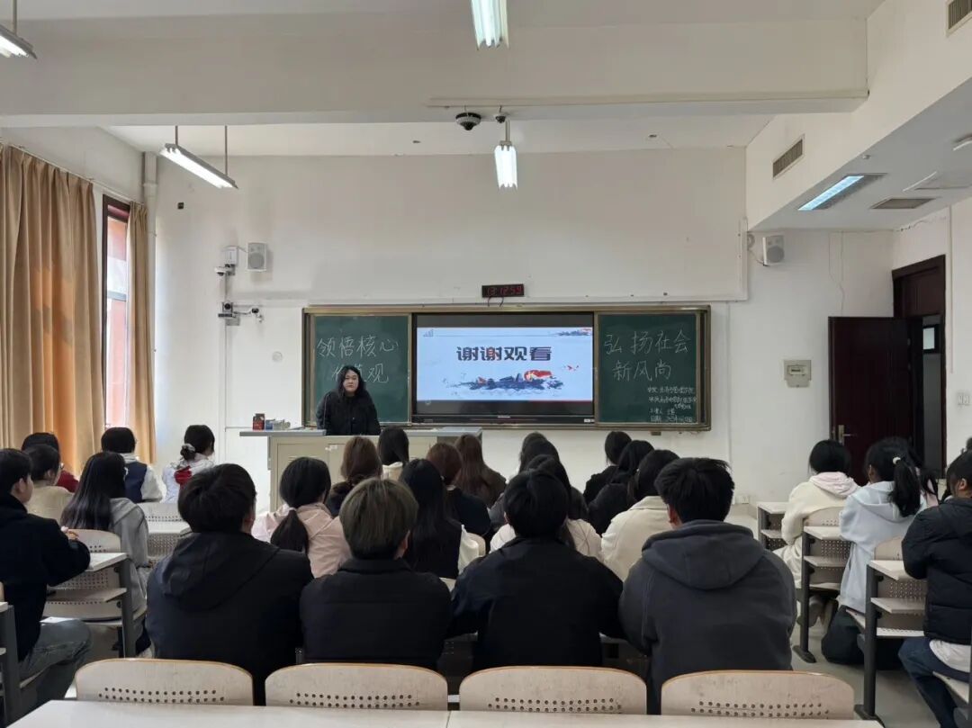 经济与管理学院积极响应时代号召,于3月18日中午组织24级全体学生,在文汇楼召开了以“领悟核心价值观,弘扬社会新风尚”为主题的政治学习会议。