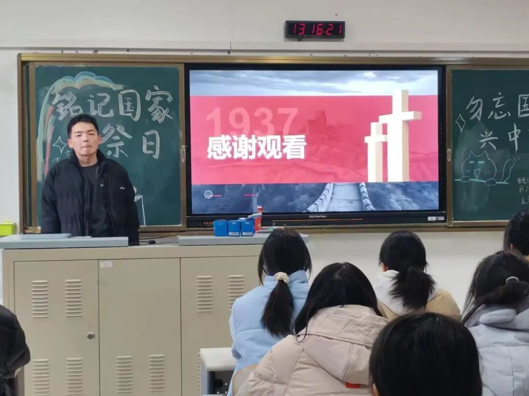 为纪念国家公祭日,增强新时代青年的爱国情感和历史责任感,经济与管理学院于2024年12月13日中午,由学院团总支带领24级全体学生在文汇楼开展以“铭记国家公祭日,勿忘国耻兴中华”为主题的团课。
