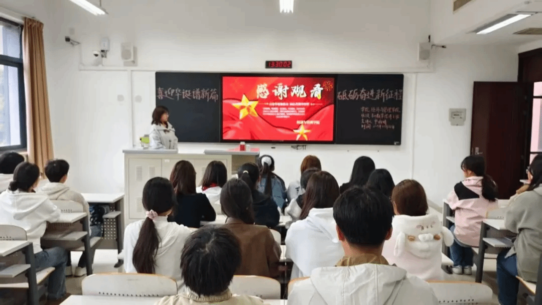 随后,主讲人明确指出,坚持中国共产党的领导是办好中国一切事情的根本前提,必须始终坚定走中国特色社会主义道路,用发展的办法破解前进中的问题。主讲人结合历史进程分享启示,号召我院青年主动担当时代重任,教室内氛围愈发庄重而热烈,与会学生全神贯注倾听,对家国情怀的内涵与个人使命的意义产生更深刻的体悟。