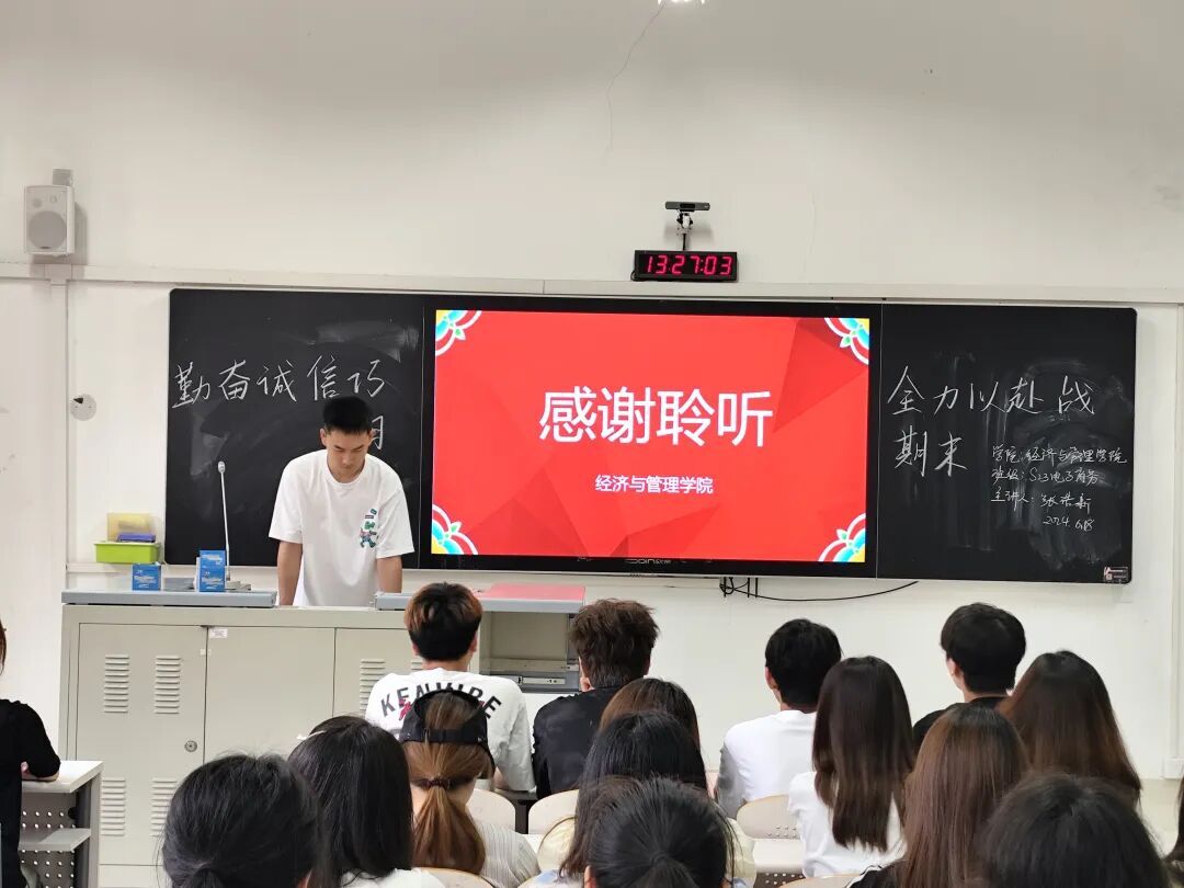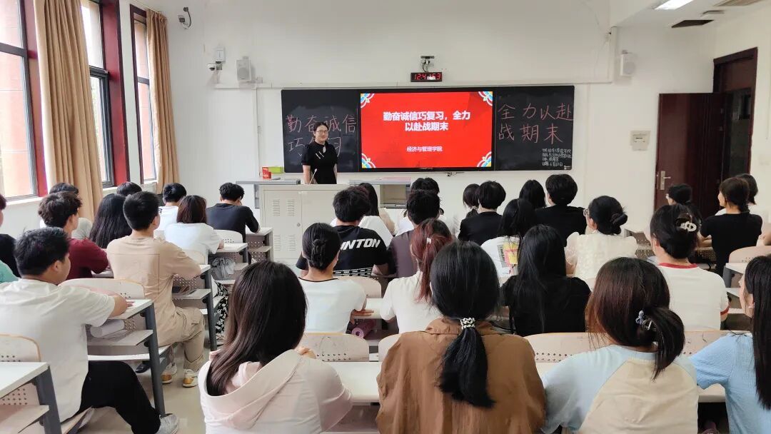 期末考试在即,为进一步增强青年大学生的备考信心,提高我院学生的复习效率,经济与管理学院23级全体学生于6月18日在文汇楼召开了以“勤奋诚信巧复习,全力以赴战期末”为主题的政治学习会议。