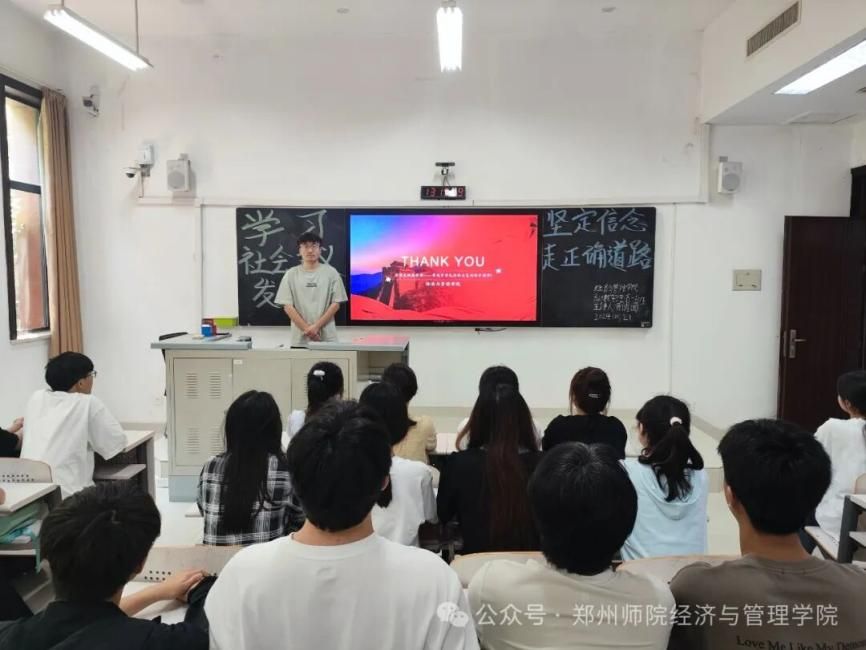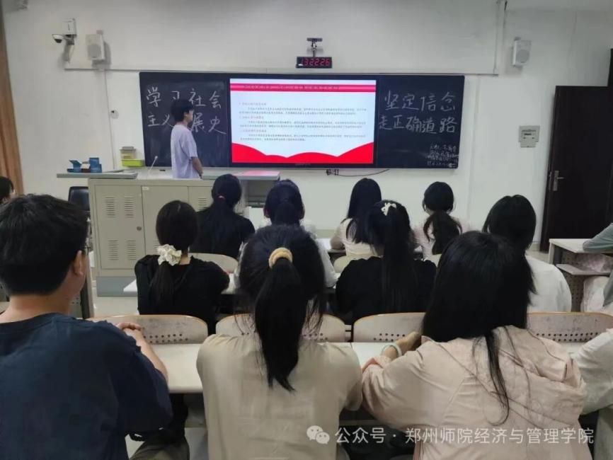 5月21日中午,经济与管理学院23级全体学生在文汇楼召开了以“学习社会主义发展史,坚定信念走正确道路”为主题的政治学习会议。本次政治学习会议主要分为五个部分,分别为“开篇序言”“中国共产党的成立与发展”“中国特色社会主义道路的探索”“中国特色社会主义道路的探索与实践”、“习近平新时代中国特色社会主义思想的形成与发展”。