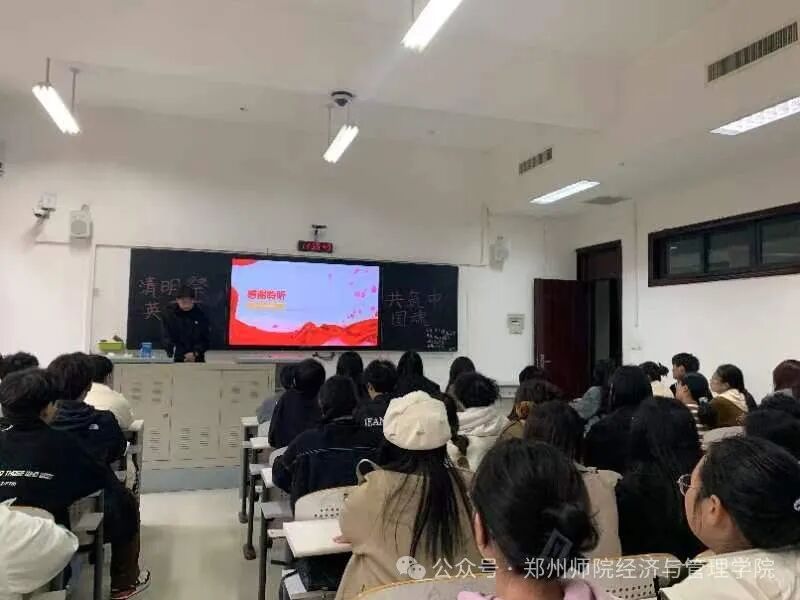4月2日中午,经济与管理学院23级全体学生在文汇楼召开了以“清明祭英烈,共筑中国魂”为主题的政治学习会议。本次政治学习会议主要分为四个部分,分别为“清明时节雨纷纷”“英雄的光辉事迹”“清明祭英烈”和“吾辈青年”。