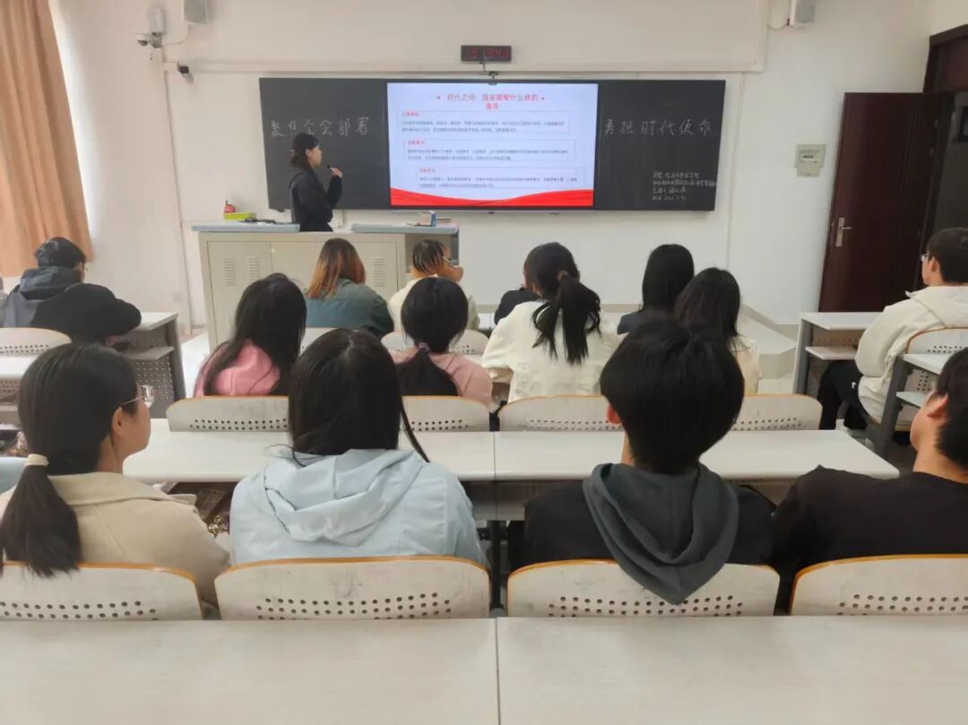 随后,主讲人结合新时代青年成长实际,引导与会学生立足专业深耕、锤炼过硬本领,将个人学业发展与国家战略需求紧密结合,号召我院青年学生树立大局意识,积极投身社会实践,以实干担当诠释青春价值。