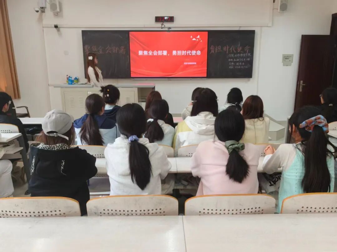 为引导青年大学生深入学习领会全会部署要求,统一思想、凝聚共识,经济与管理学院于3月31日组织25级全体学生在文汇楼开展以“聚焦全会部署,勇担时代使命”为主题的政治学习会议。