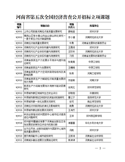 近日,河南省第五次全国经济普查领导小组办公室发布了公开招标课题立项公告。我院徐宪红教授与郑丹副教授的课题成功中标,分别获得“新质生产力培育发展统计测度与驱动因素研究”和“河南省各行业创新发展能力研究”两个课题的立项。